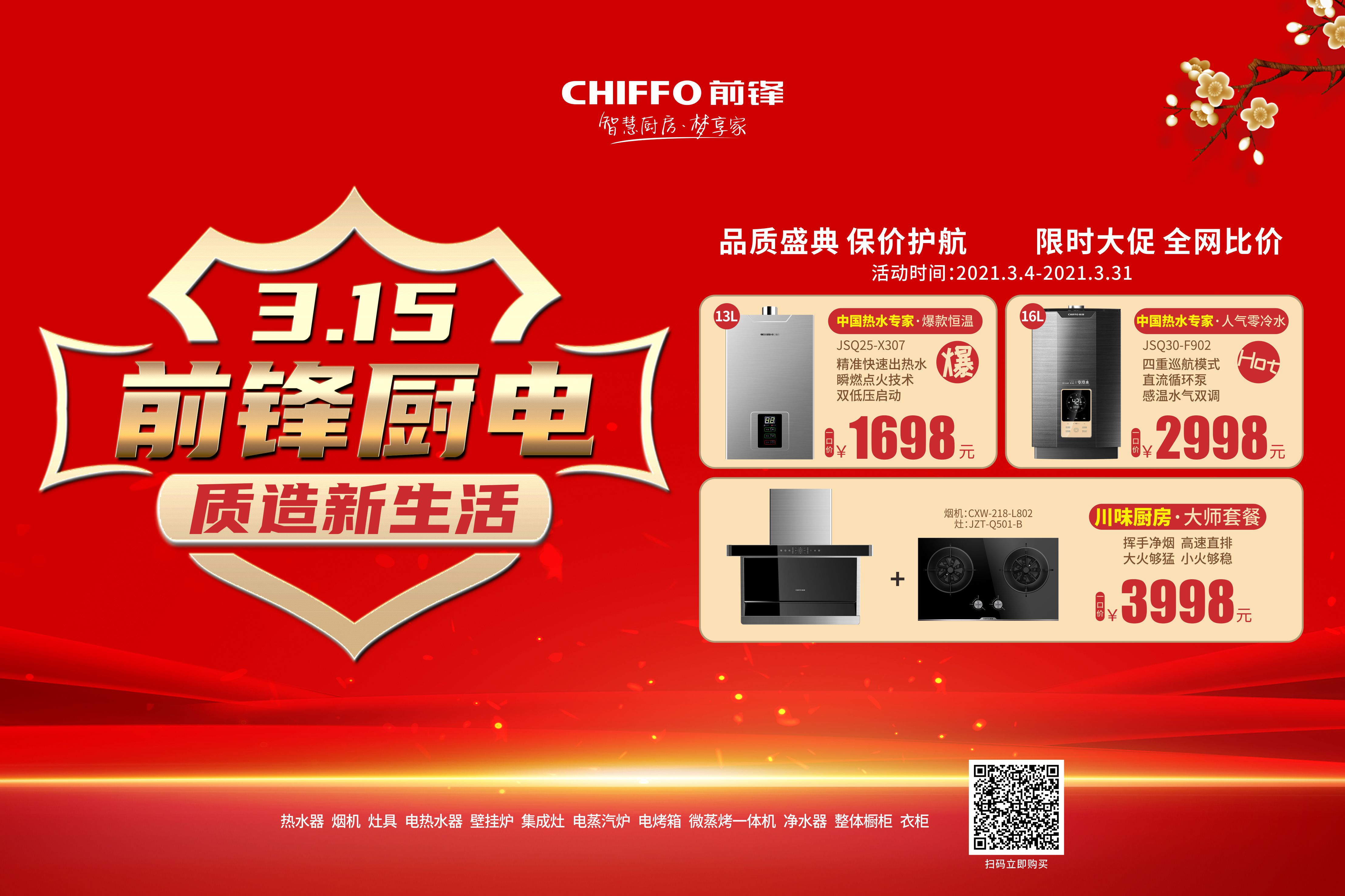 為了迎接“3·15消費者權益日”的到來,作為中國廚電領軍品牌的前鋒廚電,于3月4日—3月31日隆重推出“前鋒廚電·315質造新生活”感恩福利活動,全國聯動全線出擊,“前鋒廚電·315質造新生活”活動現已火爆開啟。